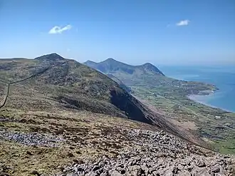 ![]() Gyrn Ddu (left) and Yr Eifl seen from the summit of Gyrn Goch | |