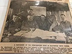 General Beyers, the Commandant-General of the Citizen Force of the Union Defence Force, with whom Hofmeyr had travelled to Europe for military inspections in 1912, was opposed to the South African government's decision to undertake offensive operations against the Germans. Beyers resigned his commission on 15 September 1914.[36] He found support from senator General Koos de la Rey, a Boer general during the Second Boer War who had led the government forces against the white strikers on the Rand earlier in 1914 and was a leading advocate of Boer independence.[31] De la Rey was strongly opposed to South Africa's involvement in World War I on the side of the British and to South Africa's proposed invasion of the German colony of South West Africa, mainly because Germany had supported the Boers during the Second Boer War.[31] Hofmeyr, as secretary to the Transvaal delegation to the National Convention, would have got to know de la Rey well as de la Rey was one of the eight Transvaal delegates.[32] On 15 September Beyers and de la Rey set off together, travelling at night, to visit Major JCG (Jan) Kemp in Potchefstroom.[31] Kemp had resigned his commission and had a large armoury and a force of 2,000 men who had just finished training, many of whom were thought to be sympathetic to the rebels' ideas.[31] Although it is not known what the purpose of their visit was, the South African government believed it to be an attempt to instigate a rebellion.[37] According to General Beyers it was to discuss plans for the simultaneous resignation of leading army officers as protest against the government's actions.[37]