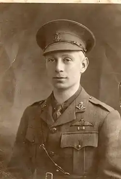 On leaving Sandhurst, he applied to the Royal Irish Regiment, joining them on 5 October 1910 and being commissioned on 23 October 1910. He gained his Royal Aero Club aviation certificate No.501 on 30 May 1913 in a Maurice Farman Biplane at the Central Flying School, Upavon.[6] He was commissioned into the RFC Reserve on 14 August 1913 before joining No2 Squadron based in Montrose, Scotland, a new base set up to patrol the North Sea and protect the fleet.