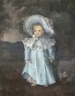 - Portrait of a Young Girl in a Blue Dress and Matching Bonnet, Holding a Lily 1897, pastel,[11] was auctioned at Christie's, South Kensington, British, Continental & Russian Pictures, on 19 July 2006, for £300.[10]