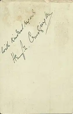 Signature on back of the above photograph of Henry E. Crudgington.