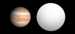 In 2010 a transiting hot Jupiter like planet was detected.[4] It has a measured dayside temperature of 2154±90 K.[10] The planet is believed to be on an unstable orbit, and expected to be engulfed by its parent star about 7.5+2.9