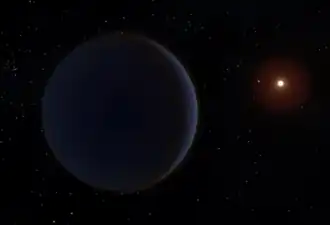 HD 219134 g, also known as HR 8832 g, is an unconfirmed[2] exoplanet orbiting around the K-type star HD 219134 in the constellation of Cassiopeia. It has a minimum mass of 11 or 15 Earth masses, suggesting that it is likely a Neptune-like ice giant. Unlike HD 219134 b and HD 219134 c it is not observed to transit and thus its radius and density are unknown. If it has an Earth-like composition, it would have a radius 1.9 times that of Earth. However, since it is probably a Neptune-like planet, it is likely larger.