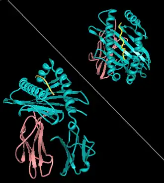 HLA-A1 (A1) is a human leukocyte antigen serotype within HLA-A "A" serotype group. The serotype is determined by the antibody recognition of α1 subset of HLA-A α-chains. For A1, the alpha "A" chain are encoded by the HLA-A*01 allele group and the β-chain are encoded by B2M locus.[1] This group currently is dominated by A*01:01. A1 and A*01 are almost synonymous in meaning. A1 is more common in Europe than elsewhere, it is part of a long haplotype that appears to have been frequent in the ancient peoples of Northwestern Europe. A1 is a frequent component of the AH8.1 haplotype. A1 serotype positivity is roughly linked to a large number of inflammatory diseases and conditions believed to have immune system involvement. Because of its linkage within the AH8.1 haplotype many studies showed association with A1 or A1,B8 only later to show the association drift toward the class II region gene alleles, DR3 and DQ2.5. While it is not clear what role A1 has in infectious disease, some linkage with infection rates in HIV remain associated within the A1 region of the haplotype.