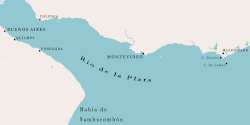 In February 1808, Agamemnon sailed with Rear-Admiral Sir Sidney Smith's flagship Foudroyant to Brazil, where they joined another squadron. At Rio de Janeiro it was discovered that Agamemnon was again quite worn out, with seams in her planking opening and some of her framing bolts broken.[21] In October, Agamemnon and Monarch anchored in Maldonado Bay, in the mouth of the River Plate. They had been escorting the merchant vessel Maria, which had carried the surgeon Dr. James Paroissien to Montevideo where he was tasked with exposing a plot against King John VI of Portugal, who was in exile in Brazil. Whilst there, Monarch ran aground, requiring Agamemnon's assistance to get her off. After learning that Paroissien had been imprisoned, the two ships put to sea, but were forced to return to Maldonado Bay when they encountered bad weather.[22] After the ships returned to Rio in January 1809, the ship was fully surveyed by the carpenter, who drew up an extensive list of her defects.[21]