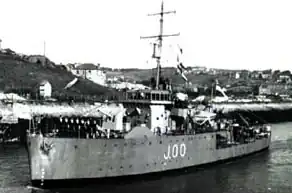 HMS Bangor was a Bangor-class minesweeper of the Royal Navy that served during the Second World War. She was built at the Harland & Wolff shipyard in Govan, Scotland. Bangor was the lead vessel of her class and one of the diesel-engined versions. She was ordered on 12 July 1939, laid down on 19 September 1939, launched on 23 May 1940, and commissioned on 7 November 1940. She is named after the Northern Ireland seaside town of the same name.