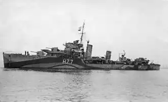 HMS Boreas was a B-class destroyer built for the Royal Navy around 1930. Initially assigned to the Mediterranean Fleet, she was transferred to the Home Fleet in 1936. She then patrolled Spanish waters, enforcing the arms blockade during the first year of the Spanish Civil War of 1936–1939. She spent most of World War II on convoy escort duties in the English Channel and the North Atlantic, based at Dover, Gibraltar, and Freetown, Sierra Leone. Boreas also participated in Operation Husky and was later loaned to the Royal Hellenic Navy the next year after conversion into an escort destroyer. She was renamed Salamis and served in the Aegean for the rest of the war. Salamis became a training ship after the war until she was returned to Britain and scrapped in 1952.