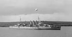 Dorsetshire was laid down at the Portsmouth Dockyard on 21 September 1927 and was launched on 21 January 1929. After completing fitting-out work on 30 September 1930 she was commissioned into the Royal Navy.[1] Upon commissioning, Dorsetshire became the flagship of the 2nd Cruiser Squadron.[3] In 1931, she was part of the Atlantic Fleet during the Invergordon Mutiny. During the incident, some of her men initially refused to assemble for duty but after an hour and a half, the ship's officers had restored order and no further unrest troubled Dorsetshire during the mutiny.[4] From 1933–1935, she served as the flagship for the Commander-in-Chief, Africa; she was replaced by Amphion.[5] By September 1935, Dorsetshire was assigned to the China Station.[6] From 1–4 February 1937, Dorsetshire, the aircraft carrier Hermes and the cruiser Cumberland participated in an exercise to test the defences of Singapore against a hypothetical Japanese attack.[7]