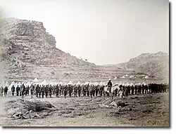 On 13 April, they took part in the assault and capture of Magdala, throwing rockets into the town. The Brigade sustained no casualties at Magdala, and behaved admirably, earning the warm praise of the Commander-in-Chief.[8] By 10 June, the campaign was over and the British forces had re-embarked at Zula.