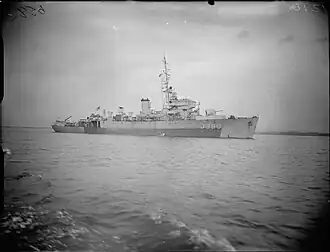 The ship was ordered on 30 April 1942 at the Harland & Wolff at Belfast, Ireland. She was laid down on 27 November 1943 and launched on 20 July 1944. The ship was commissioned on 9 December 1944.[3]