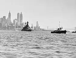 Later that month Malaya was escorting Convoy SL 68. On the evening of 20 March 1941, about 250 nmi (460 km; 290 mi) west-northwest of the Cape Verde Islands, Malaya was hit by a torpedo from U-106. Damaged on the port side, and with a 7 degree list due to flooding, Malaya was forced to leave the convoy and make for port, escorted by the corvette Crocus. She reached Trinidad safely on 29 March.[26][27] After temporary repairs, she continued to the New York Navy Yard, where she was docked for four months.[28] During that time, personnel from the ship ferried ten Banff-class sloops to Britain.