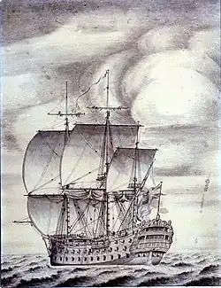 HMS St Michael was a 90-gun second rate ship of the line of the Royal Navy, built by John Tippetts of Portsmouth Dockyard and launched in 1669.[1]