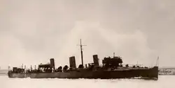 On 30 August 1912 the Admiralty directed all destroyer classes were to be designated by alpha characters starting with the letter 'A'. Since her design speed was 30-knots and she had three funnels she was assigned to the C Class. After 30 September 1913, she was known as a C Class destroyer and had the letter ‘C’ painted on the hull below the bridge area and on either the fore or aft funnel.[5]