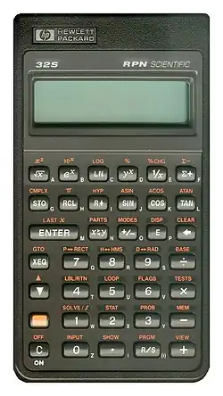 The HP-32S (codenamed "Leonardo") was a programmable RPN scientific calculator introduced by Hewlett-Packard in 1988.[1] It was succeeded by the HP-32SII scientific calculator.[2]