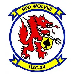 Helicopter Sea Combat Squadron 84 (HSC-84) "Red Wolves" was a helicopter squadron of the United States Navy Reserve. Along with the "Firehawks" of HSC-85, the "Red Wolves" were one of only two squadrons in the U.S. Navy dedicated to supporting Navy SEAL and SWCC Teams, and Combat Search & Rescue. Prior to their deactivation in March 2016 they operated 14 HH-60H Rescue Hawks organized into four independent, two aircraft detachments that could deploy anywhere in the world within 72 hours of notice.[1]