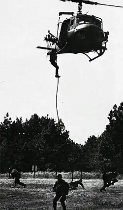 HSC-84 was established on 1 July 1976 at NAS Norfolk, Virginia by CDR James L Poe, USNR and CDR Theodore G Sholl, USNR as Helicopter Attack Squadron (Light) Four (HAL-4) equipped with Bell HH-1K Huey gunships to provide dedicated aviation support for Naval Special Warfare (NSW), Explosive Ordnance Disposal (EOD) and Special Warfare Combatant-craft Crewmen (SWCC) Teams.[2]