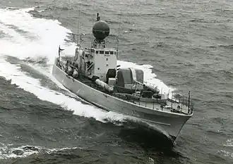 The hull was made of steel, unlike some other contemporary designs which used plywood. Although the boat had a relatively small hull and displacement, this provided a stable platform. The Bridge and Operations Room were located at the rolling and stamping centre of the ship which further improved stability for the crew especially in high seas. The boats were fitted with an NBC support system where the hull could be closed down in the event of having to operate in a nuclear fall-out area.[1]