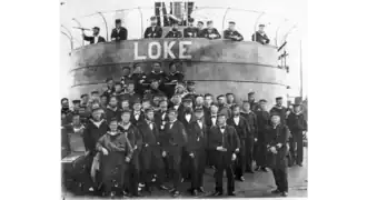 Loke, the last-built ship in the class, was somewhat larger than her half-sisters. She was 64.4 meters (211 ft 3 in) long overall, with a maximum beam of 14.03 meters (46 ft 0 in). The ship drew 3.7 meters (12 ft 2 in) and displaced 1,620 metric tons (1,590 long tons) fully loaded.[2][3] The ship was divided into nine main compartments by eight watertight bulkheads. Over time a flying bridge and, later, a full superstructure, was added to each ship between the gun turret and the funnel.[3] Initially their crew numbered 80 officers and men, but this increased to 104 as the ships were modified with additional weapons.[2]