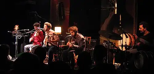 Habiluim (Hebrew: הבילויים; lit. The recreations / entertainments, also the name of members of the Bilu movement) is an Israeli, theatrical rock and polka band formed in 1996 by Noam Enbar (bass and vocals) and Yammi Wisler (electric guitar) as a reaction to the deep sense of abhorrence they felt listening to contemporary Israeli pop music, which they viewed as a means of escape from the harsh Israeli reality.