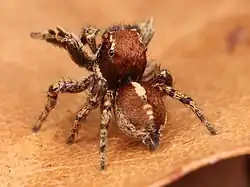 - ^ Maddison WP, Evans SC, Hamilton CA, Bond JE, Lemmon AR, Lemmon EM (2017). "A genome-wide phylogeny of jumping spiders (Araneae, Salticidae), using anchored hybrid enrichment". ZooKeys 695: 89-101.