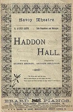 - ^ a b Walker, Ramond J. "Haddon Hall is a Grundy and Sullivan Rarity", Seen and Heard International, 4 August 2018; and Hall, George. "Haddon Hall review at Royal Hall, Harrogate – 'rare resuscitation of Arthur Sullivan's pedestrian work'", The Stage, 21 August 2018