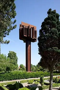 A new bell tower was designed by the architect J.K. Sørensen, and erected in 1977 out of steel. Following a donation in 1991, the tower was outfitted with a bell chime, which was completed and consecrated in 1992 by the Bishop of the Diocese of Aalborg, Søren Lodberg Hvas. The chime includes 23 new bells in addition to the church's previous three. It is played several times a day by the church's organist.[6]
