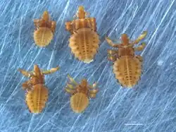 Haematopinus is a genus of insects in the superfamily Anoplura, the sucking lice.[1] It is the only genus in the family Haematopinidae,[2] known commonly as the ungulate lice.[3] All known species are of importance in veterinary medicine.[2] These lice are some of the most economically important ectoparasites of domestic animals.[4] Species infest many domesticated and wild large mammals, including cattle, horses, donkeys, swine, water buffalo, African buffalo, antelope, zebra, deer, and camels.[4] The species Haematopinus tuberculatus has great importance in the water buffalo breading, since this louse is specific to buffaloes, being the main ectoparasite of the species, with important sanitary and economic burden.[5][6] The Haematopinus tuberculatus is suspected to be involved in the transmission of diseases, such as anaplasmosis.[7] The parasites are found infesting buffaloes in greater concentrations around the ears, base of horns, side of the neck, around the scrotum or udder, and especially at the tip of the tail.[5]
