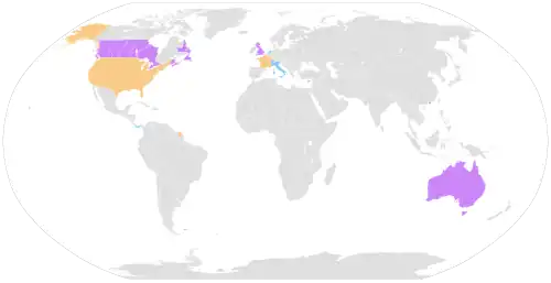 As of September 2017, 14 countries have ratified the convention:[1] Australia, Cyprus, Canada (9 provinces: all except Quebec, and none of the territories), China (Hong Kong only), Italy, Luxembourg, Liechtenstein, Malta, Monaco, the Netherlands (European territory only), Panama, San Marino, Switzerland and the United Kingdom (including 12 dependent territories/crown dependencies: Akrotiri and Dhekelia, Bermuda, British Antarctic Territory, British Virgin Islands, Falkland Islands, Gibraltar, Guernsey, Isle of Man, Jersey, Montserrat, Saint Helena, South Georgia & South Sandwich Islands and Turks and Caicos Islands).