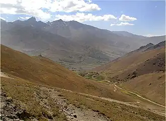 The Hajigak Pass (Hazaragi: حاجیگک hajji gak 'little pilgrim') is a mountain pass of Afghanistan. It is situated at a height of 3,700 metres (12,100 ft) above sea-level in the northern part of Maidan Wardak province, connecting it with Bamyan province to the northwest. It is one of the two main routes from Kabul to Bamyan in Hazarajat, leading across the Koh-i-Baba range.[1]