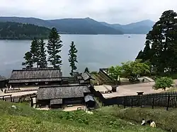 Panorama view of ancient Hakone Barrier area and Lake Ashi -