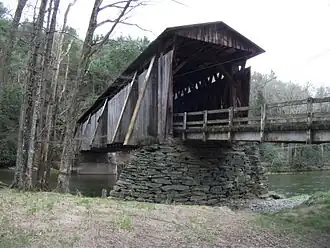 Halls Mills Bridge is a wooden covered bridge over the Neversink River. It is in the town of Neversink, in Sullivan County, New York, on Hunter Road. Construction began in 1906 and was completed in 1912, built by David Benton and James Knight. It is a single span of town lattice truss design. The bridge was retired from vehicle use in 1963, and was accessible to pedestrians only. It is now posted as being closed to pedestrian traffic.