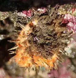 Halocynthia igaboja, commonly known as sea hedgehog, bristly tunicate or spiny sea squirt,[2] is a species of tunicate in the family Pyuridae. It is native to the northeastern Pacific Ocean. This species was first described in 1906 by the Japanese marine biologist Asajiro Oka, who gave it the name Cynthia ritteri. It was later transferred to the genus Halocynthia.[1]