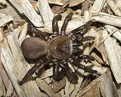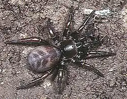 Halonoproctidae is a family of mygalomorph spiders, split off from the family Ctenizidae in 2018. Species in the family are widely distributed in North and Central America, Australasia, Asia, southern Europe and North Africa. One species is recorded from Venezuela in South America.[1] They are relatively large, sombrely coloured spiders, that live in burrows with some kind of trapdoor.