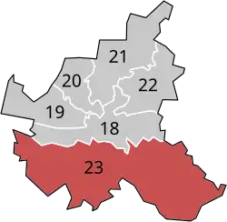 Hamburg-Bergedorf – Harburg is an electoral constituency (German: Wahlkreis) represented in the Bundestag. It elects one member via first-past-the-post voting. Under the current constituency numbering system, it is designated as constituency 23. It is located in southern Hamburg, comprising the boroughs of Bergedorf and Harburg, as well as the quarter of Wilhelmsburg from Hamburg-Mitte.[1]