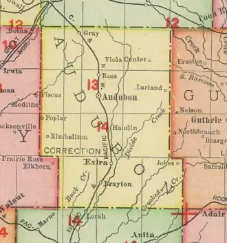 - ^ "Audubon County". Iowa Ghost Towns. Archived from the original on September 25, 2013. Retrieved August 6, 2014.