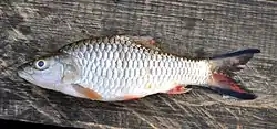 Hampala macrolepidota, the hampala barb, is a relatively large southeast Asian species of cyprinid from the Mekong and Chao Phraya basins, as well as Peninsular Malaysia and the Greater Sundas (Borneo, Java and Sumatra).[1][2] It prefers running rivers and streams, but can be seen in most freshwater habitats except torrents, small creeks and shallow swamps.[2] This predatory species reaches up to 70 cm (2.3 ft) in length and it is common at half that size.[2]