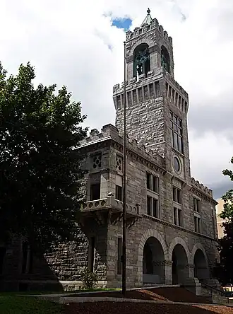 Hampden County Courthouse is a historic courthouse on Elm Street in Springfield, Massachusetts designed by Henry Hobson Richardson. This was the county's second courthouse. The first courthouse was a small meetinghouse structure built in 1740, and the second and was constructed in 1822, but by the 1860s, popular pressure was developing for a new proper courthouse. A grand jury indicted the county commissioners in 1869 for official misconduct since the courthouse did not have fireproof storage for the registry of deeds and the safekeeping of public records. This forced the county to build a new courthouse.[2]