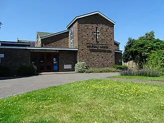 The first chapel, a Wesleyan Methodist chapel on Church Street in Hampton, was built in 1861.[1] It was replaced in 1926 by a new chapel on Percy Road.[2] The current church was opened in 1963.[2] It is located on the west side of Percy Road between Priory Road and Lindon Road (Percy Road, Hampton TW12 2JT).