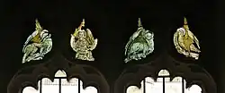 The north window of the chancel was inserted in the 15th century. Medieval stained glass, made about 1400–30, survives in four small lights at the top of the window. They represent the symbols of the four Evangelists, each with a Latin inscription.[7]