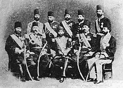 In 1870, Hamzeh Mirza captured several forts controlled by Turkmens.[3] In 1871, Naser al-Din Shah sent Hamzeh Mirza and several high-ranking officers to the city of Tbilisi to welcome the Russian emperor Alexander II (r. 1855–1881). In March/April 1872, they returned to Tehran. In 1872/73, Hamzeh Mirza was re-appointed as governor of Khorasan and Lorestan, serving until 1875/76, when his older brother Bahram Mirza succeeded him. In 1876, Hamzeh Mirza once again received the governorship of Khuzestan and Lorestan.[21] He is thereafter not mentioned in sources until 1880, when he was ordered to suppress the rebellion of Sheikh Ubeydullah, a leader of the Kurdish branch of the Sufi order Naqshbandi. Before he could engage Sheikh Ubeydullah, Hamzeh Mirza died near Baneh.[3]