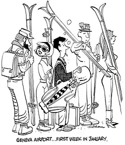 Ketcham's first wife, Alice Louise Mahar Ketcham, died on June 22, 1959, of a drug overdose.[1] The real-life Dennis was 12 when his mother died. Ketcham and Alice were separated at the time of her death. Ketcham did not inform his son of his mother's death, or visit his son, until she was buried, and Dennis was not present at the funeral. Three weeks later, Ketcham married Jo Anne Stevens, who he met on a blind date. The family moved to Geneva, Switzerland, where they lived from 1960 to 1977, where Ketcham continued to produce Dennis the Menace. Dennis had difficulty with his schooling, though, so he was sent to boarding school in Connecticut, while Ketcham and his second wife remained in Switzerland. This marriage ended in divorce in 1968.[9]