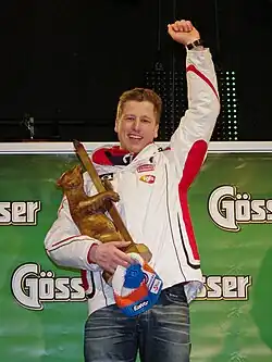 Reichelt won the World Cup season title in the super-G in 2008, a single point ahead of runner-up Didier Cuche. Reichelt won the final Super-G event of the season by one-hundredth of a second to claim the globe.[1] At the 2015 World Championships, he won the gold medal in the super-G, to go along with his silver medal in the super-G at the 2011 World Championships.[2]