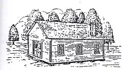 The finished church building measured 25 by 40 feet (7.6 m × 12.2 m). Inside the building were a pump organ in the front left corner, an altar in the center, a high pulpit to the right of the altar, a box stove with a pipe, and two rows of benches without backs. Whitewashed logs could be seen and the floor was made of split logs with the faces smoothed. A row of pegs on the rear wall served as hangers for hats and coats. The men sat on the right side of the church, and the women sat on the left. This building was also used as the first location of Hanover's day school, begun shortly after the construction of the church building. Classes were held during the day in the church building, and taught originally by Christian August Lehmann, the first pastor of the congregation.[4]