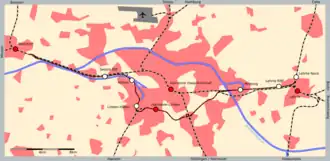 The Hanover freight bypass railway (German: Güterumgehungsbahn Hannover) is a freight railway in the German state of Lower Saxony, which relieves Hannover Hauptbahnhof of freight traffic. It separates freight from passenger traffic on several routes and runs through the western and southern outskirts of the city, bypassing the city centre and the main station.
