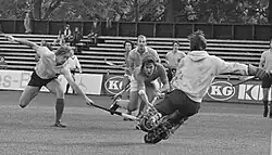 ![]() Hans Kruize (center) is scoring a goal against Belgium in 1974 | ||||||||||||