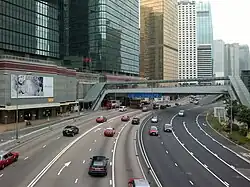 Harcourt Road (Chinese: 夏慤道) is a major highway in Admiralty, Hong Kong, connecting Central and Wan Chai. It starts at Murray Road and ends at Arsenal Street.[1] The road is 780 metres in length and has four lanes of traffic on either side. The section of Harcourt Road westbound between Rodney Street and Cotton Tree Drive features a frontage road.