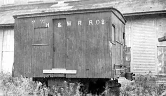 The railroad company’s charter allowed it to suspend service in the winter,[17] and the front page of the local freight tariff always included a notice that carriage was "subject to the right to suspend operations upon statutory notice" from December through March.[1]: 53–54  However, the railroad did not close for the winter throughout its operation[1]: 54  although there were some shorter closures late in its existence.[26]: 22  As a result, snow was an issue for the railroad.[18] The railroad's first snowplow was built by the railroad’s first engineer; it had to be removed and attached to the other end of the locomotive at each switchback.[6]: 25  Around 1900, this plow was replaced with a plow obtained from a timber railroad. This proved unsatisfactory, and a second-hand plow was bought from the St. Johnsbury & Lake Champlain when that railroad obtained a new one. This third plow served the H&W for the rest of its existence.[6]: 25  For lighter snowfalls, the railroad had a "flanger", designed by a conductor and built in Lyndonville. It was built on a single long truck and was quite effective.[1]