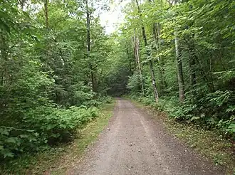 Much of the railroad's right of way is now a trail through second-growth woodland.