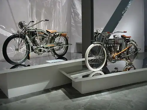 A 1911 Model 7A exhibited at The Art of the Motorcycle at Wonders Memphis. Similar to the Model 7D, but with a 30.17 cu in (494.4 cc) single and a top speed of 40 mph (64 km/h)