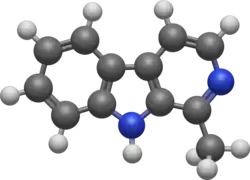 Harmane (harman) is a heterocyclic amine and β-carboline found in a variety of foods including coffee ,[ 1] sauces,[ 2] and cooked meat.[ 3] It is also present in tobacco smoke .[ 4]